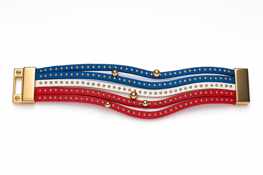 Bracelet Cuir Bleu & Croix Dorée – Fermoir Magnétique Luxe