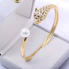Bracelet jonc serpent doré et perle – acier inoxydable