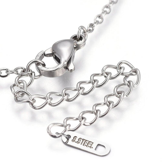 Collier pendentif rectangle noir & blanc – acier inoxydable argenté