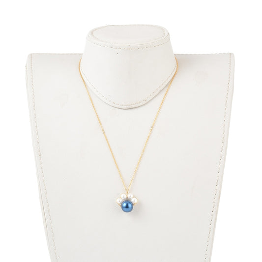 Collier perle bleue & perles blanches – chaîne dorée