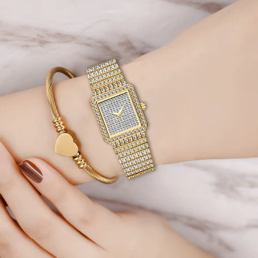 Montre Femme Impériale Diamantée – Luxe Or & Strass Intégral