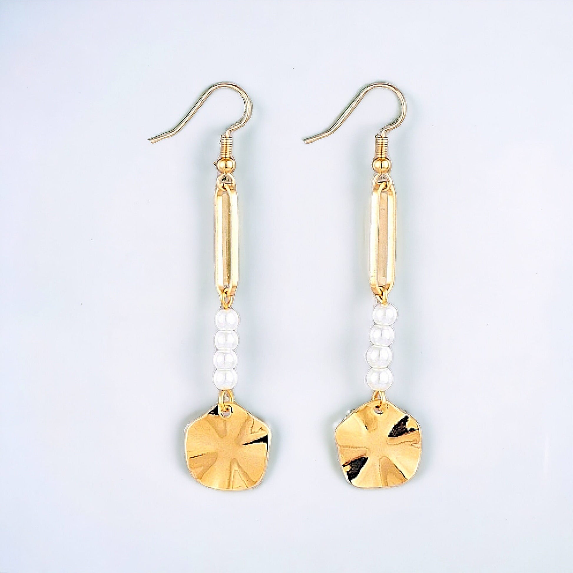 Boucles d’oreilles perles de verre - pendentif en laiton et crochets de boucle d’oreille torsadé plat rond, plaqué or 18 carats