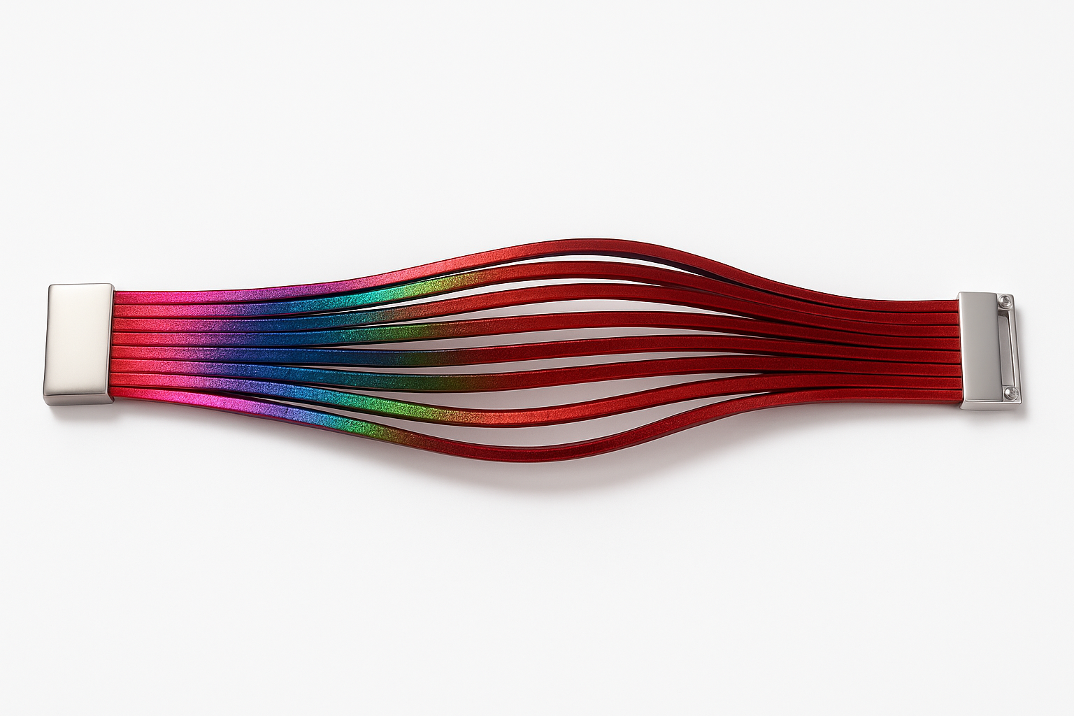 Ajoutez une explosion de couleurs à votre style avec ce bracelet multibrins arc-en-ciel. Ses reflets métalliques uniques captent la lumière et attirent tous les regards. Un bijou fun, tendance et audacieux pour celles et ceux qui osent se démarquer.