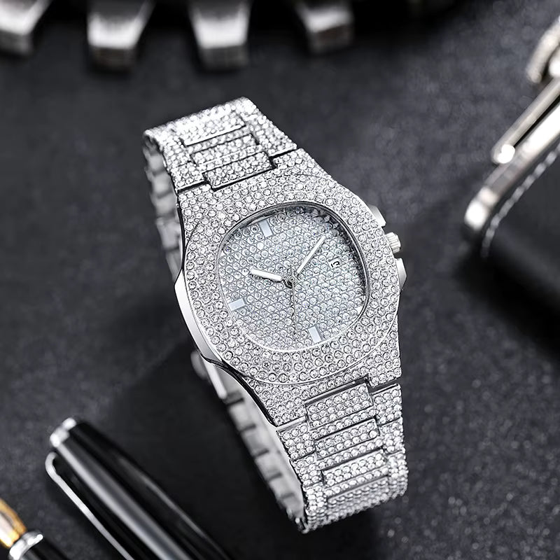 Montre Ice Diamond Silver – Luxe Intégral Strass & Finition Argent Premium