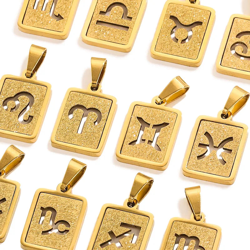 Pendentif Signe Astrologique Rectangulaire - Acier Inoxydable Plaqué Or