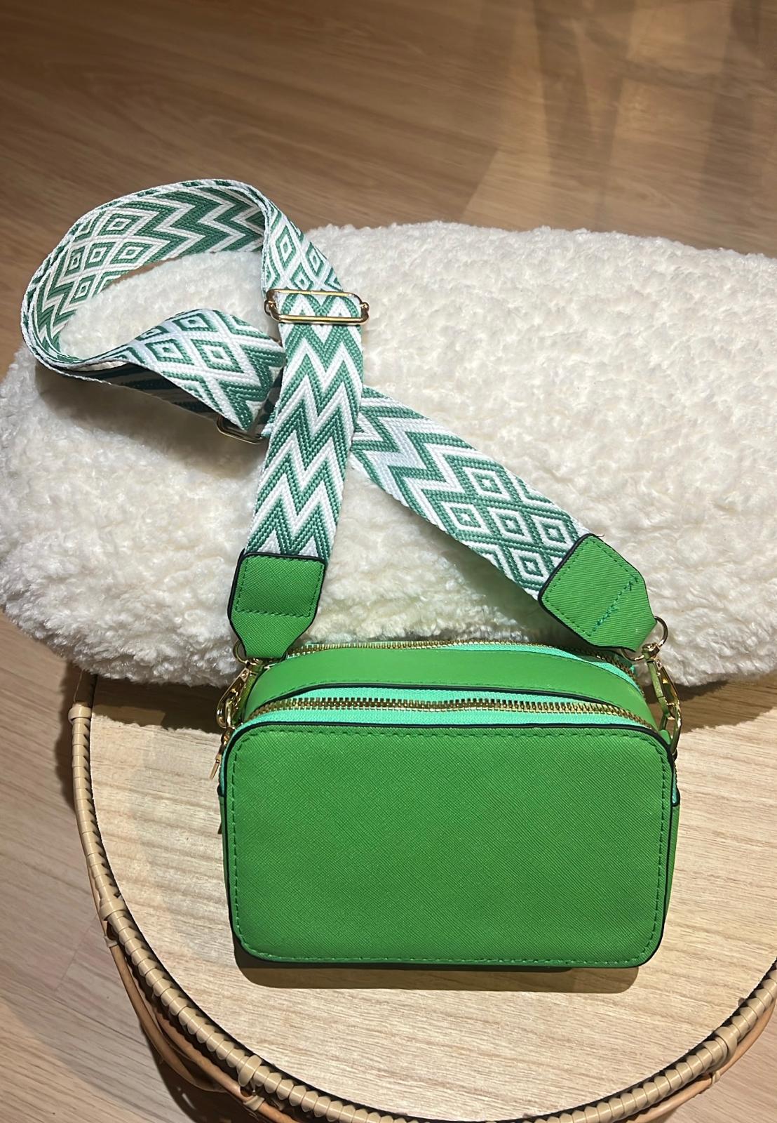 Apportez une touche de fraîcheur et de modernité à vos tenues avec le sac bandoulière Émeraude Signature. Son coloris vert lumineux, associé à une sangle graphique réglable, en fait un accessoire tendance qui attire le regard tout en restant raffiné.